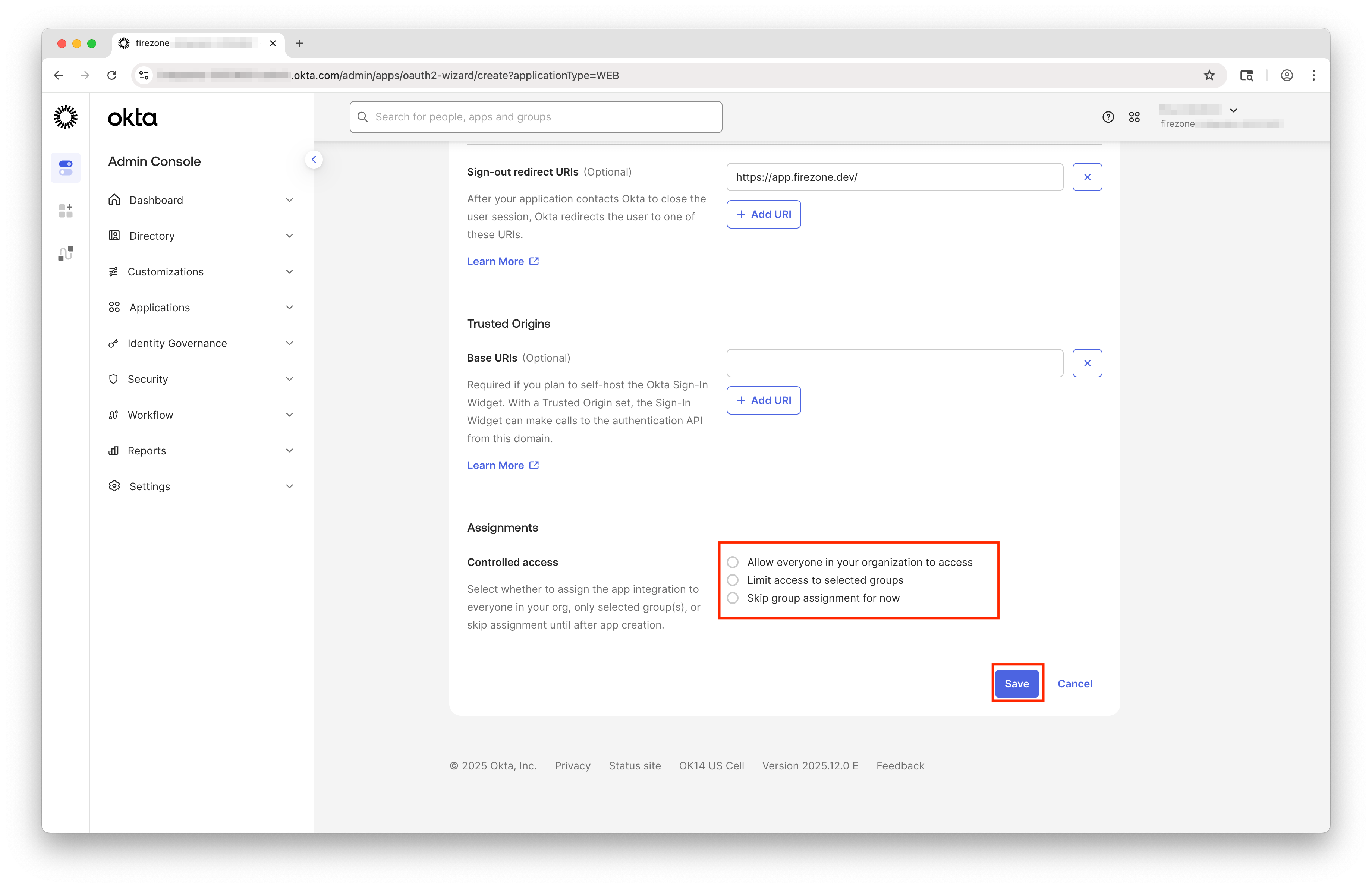 Before enabling Okta authentication in Firezone, you'll need to create an OIDC application in your Okta admin portal.