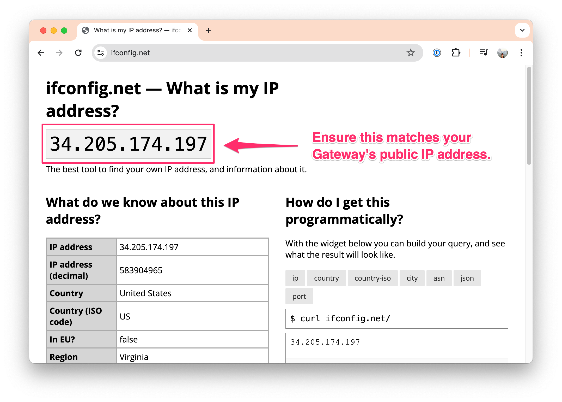 If you added the ifconfig.net Resource above, you can verify that your traffic is being routed through the Gateway by visiting https://ifconfig.net in your browser and ensuring the IP displayed matches the public IP address of your Gateway.